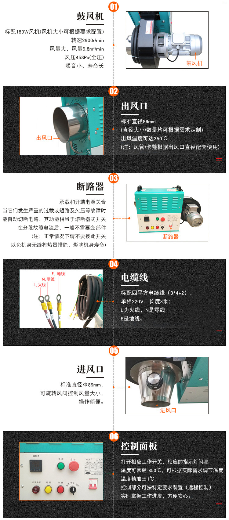 出風(fēng)溫度: | 常溫~350℃ (溫度越高風(fēng)量就越?。?/td> |